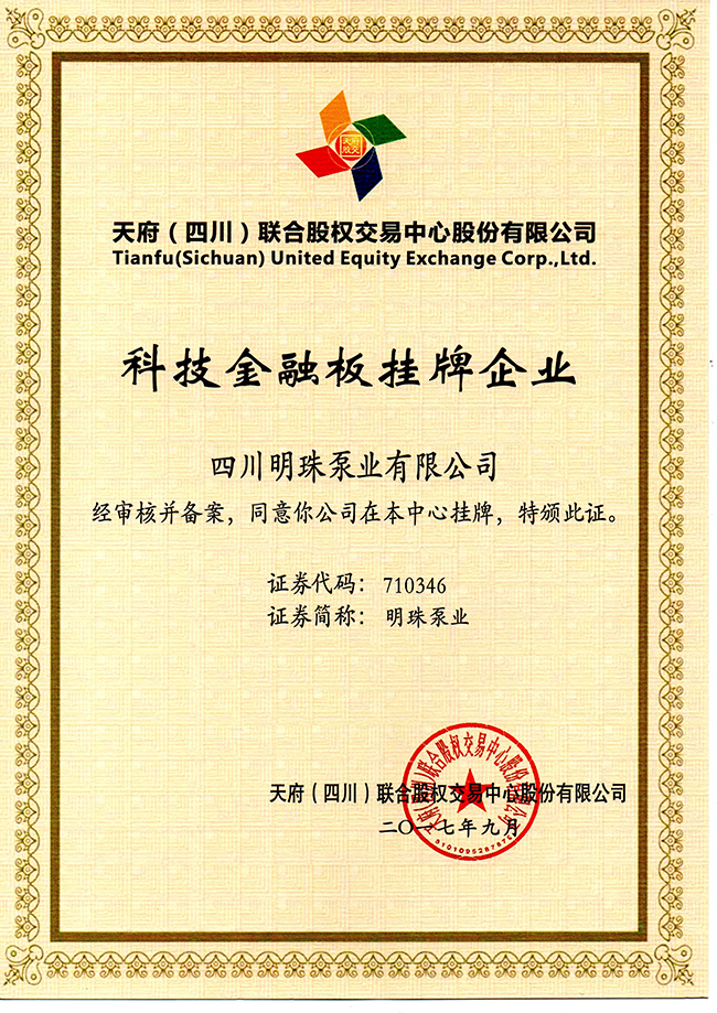 《立式多级离心泵性能检测快速装夹装置》实用新型专利证书