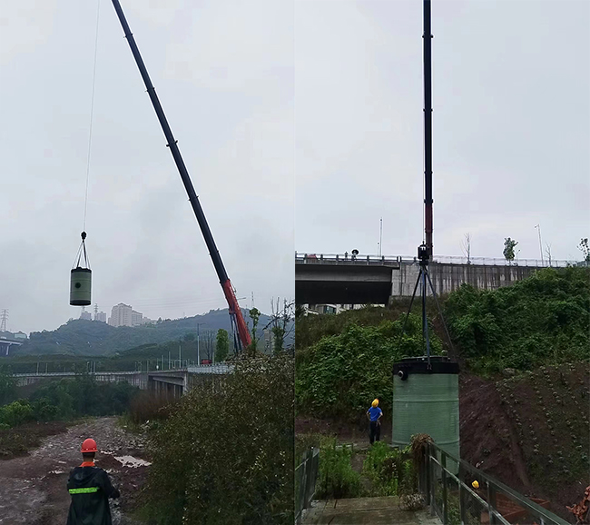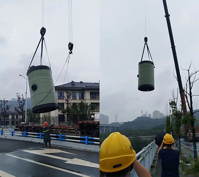 我司一体化预制泵站抵达渝北空港环保工程安装现场!