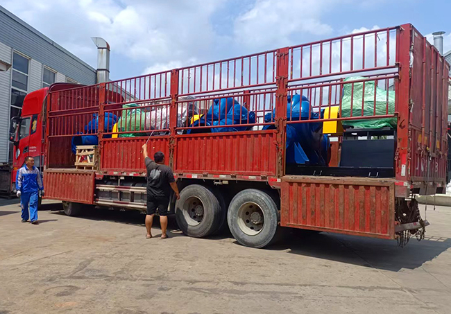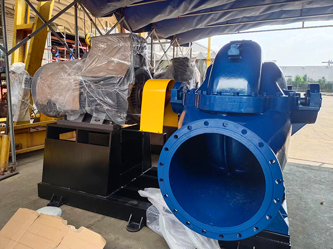 我司大流量双吸泵装车发货应用资阳九曲河防洪内涝治理!