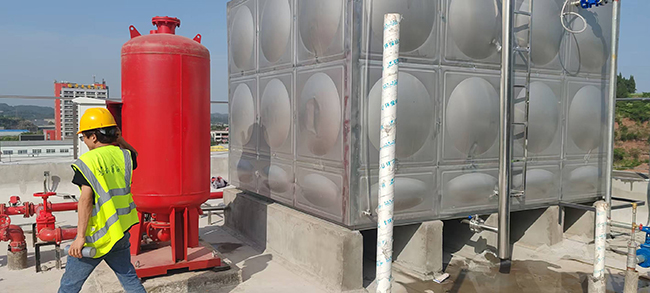 我司一体化消防水箱增压供水应用安岳市政建筑安装调试运行!