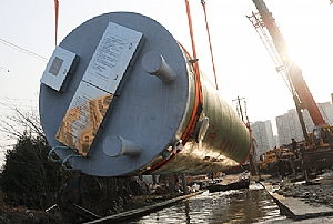 我司直径7.5米大型一体化预制泵站应用成都2024园艺博览会安装现场!